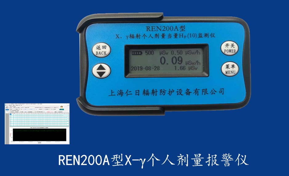 REN200型X、γ個人劑量報警儀(又叫X、γ輻射個人劑量當量HP(10)監測儀)內置高靈敏度蓋格計數管為探測器,主要用來監測各種放射性工作場所的X、γ以及硬β射線的輻射,具有響應快,測量范圍寬的特點。能顯示工作場所的劑量當量率和累積劑量,更換電池時,日期及累積數據能永久保存。可選配RenRiPersonal個人劑量管理軟件,該軟件可存儲多個人的歷史數據,能記錄日累積、月累積、年累積、輻照時長、計算平均劑量率、扣除或不扣除本底輻射,且以文字和圖譜的方式展現數據。廣泛應用于核電站、加速器、鋼鐵、化工、同位素應用、醫院、工業X、γ無損探傷、放射醫療、鈷源治療、γ輻照、放射性實驗室、核設施周圍環境監測